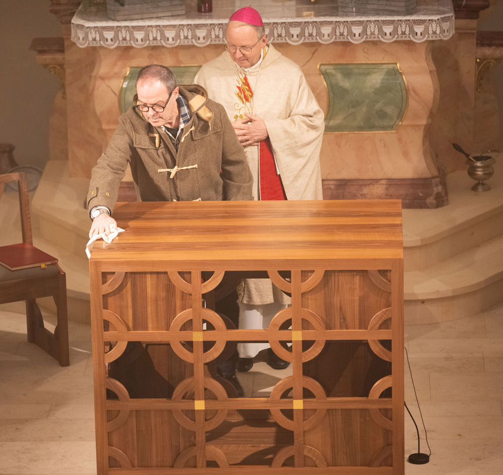 Gut zehn Monate dauerten die Arbeiten, die von Diözesanbaumeister Markus Fulterer federführend koordiniert und vom Pfarrkrichenrat unter Erwin Dünser maßgeblich begleitet wurden. Neben den optischen Veränderungen wurde auch unter der Oberfläche einiges verbessert. So wurde die bestehende Elektroheizung durch einen Fernwärmeanschluss mit Fußbodenheizung ersetzt. Auch die Lautsprecheranlage wurde ausgetauscht und einige Fenster mit automatischen Lüftungsflügeln versehen. Neben dem neuen Altar stechen insbesondere die modernen LED-Luster ins Auge. Durch die Versetzung des Ambos wurde zudem im Altarraum mehr Platz für Priester und Ministranten geschaffen.