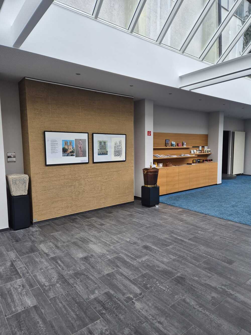 Das Foyer ist die erste Anlaufstelle für jeden Besucher in unserem Pfarrzentrum. Wir wollten, dass man sich hier sofort willkommen fühlt – wie in einem erweiterten Wohnzimmer der Pfarrgemeinde.