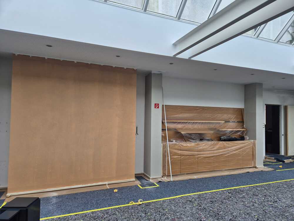 Warum war die Renovierung notwendig? Vorher entsprach das Foyer nicht mehr den heutigen Anforderungen an Ästhetik und Funktionalität. Abgenutzte und kahle Wände machten eine Sanierung unumgänglich. Ziel war es, einen Ort zu schaffen, an dem man nach dem Gottesdienst oder bei Veranstaltungen gerne verweilt.