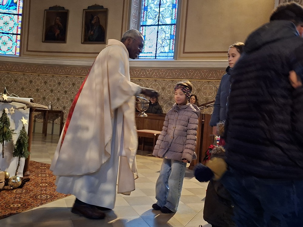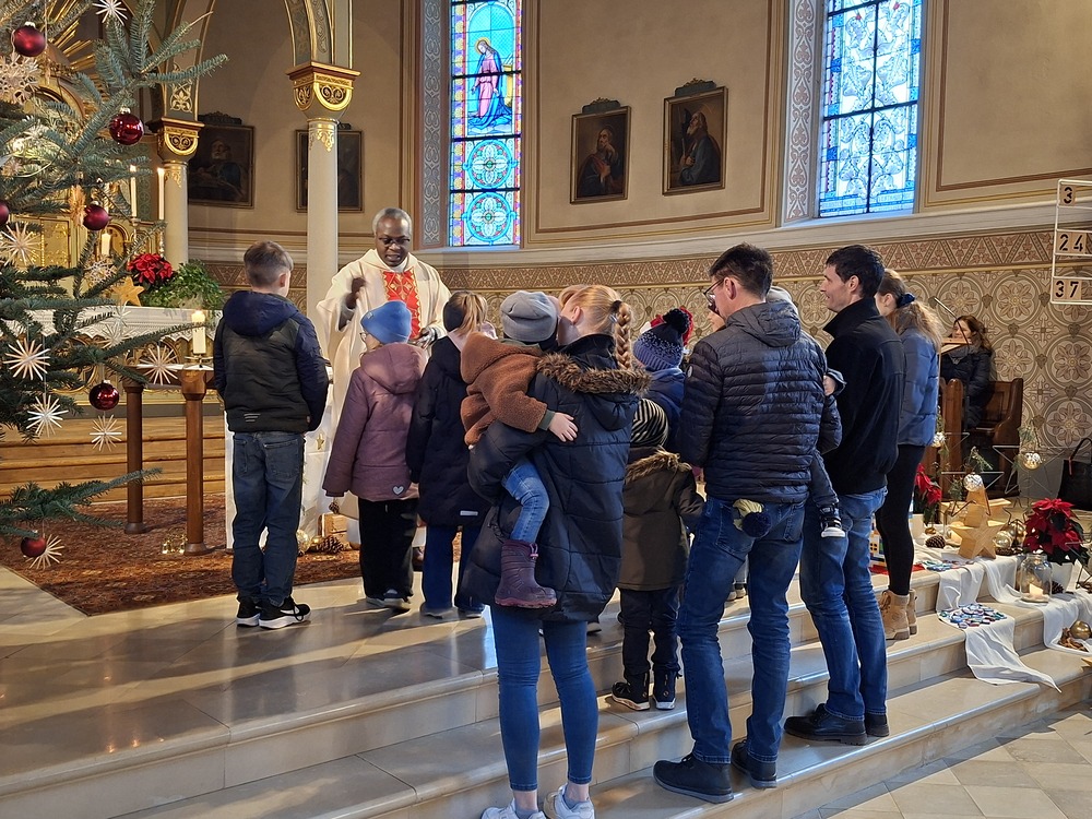 Ein besonderer Moment des Gottesdienstes war die Segnung der Kinder durch Pater Abidon. Er stellte die Kinder und ihre Familien unter den Schutz und den Segen Gottes.