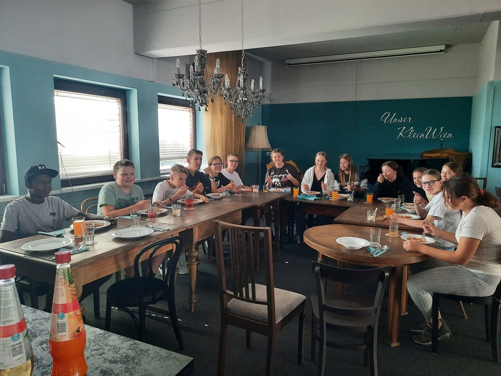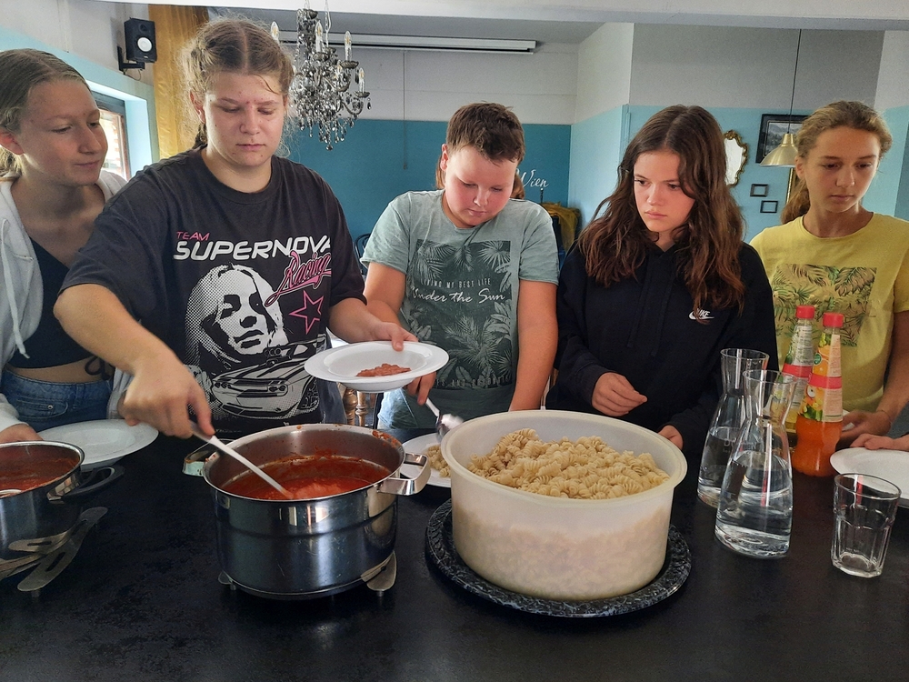 Dabei kamen die Jugendlichen nicht nur in den Genuss von Pasta, sondern auch von philosophischen Fragen („Bin ich ein guter Freund / eine gute Freundin?“ „Was macht im Leben Sinn? Wieso?“), die zu einem spannenden Austausch anregten.