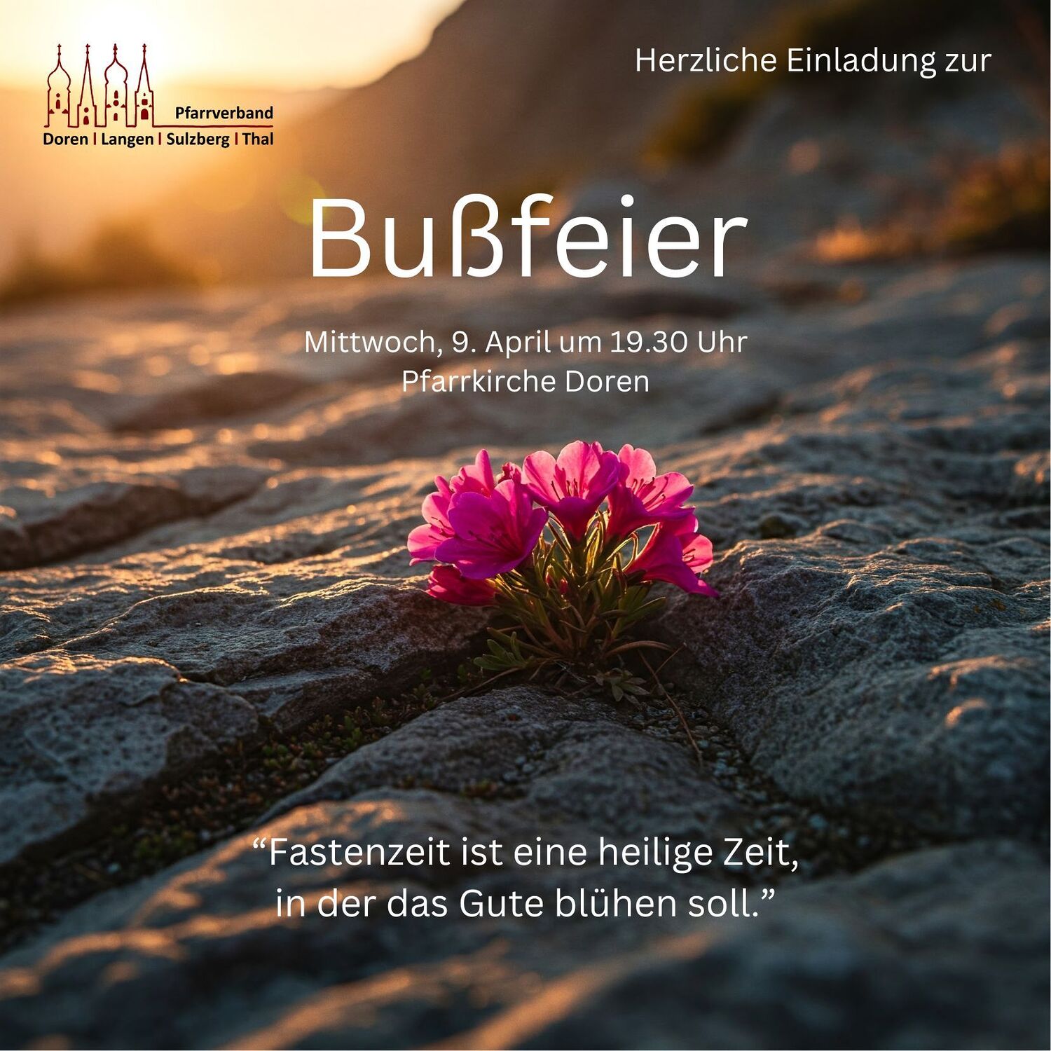 Zur Vorbereitung auf Ostern laden wir recht herzlich zur Bußfeier "Fastenzeit ist eine heilige Zeit, in der das Gute blühen soll" am Mittwoch, 09.04.2025 um 19.30 Uhr in die Pfarrkirche Doren ein.