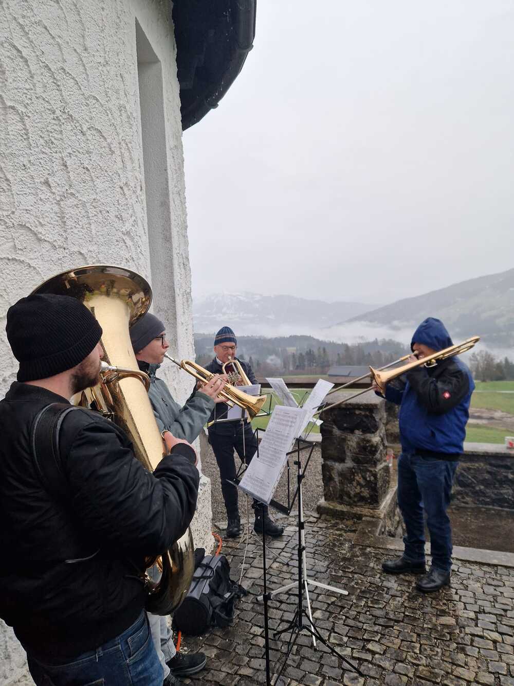 Für die musikalische Gestaltung danken wir herzlich dem Bläserensemble des Musikvereins Doren (Sigi, Benjamin, Daniel und Johann) und unserem Mundharmonikaspieler Johann, die mit ihren Klängen eine besondere Atmosphäre geschaffen haben. Ebenso ein Danke an "DJ Frankie" für die weihnachtlichen Lieder im Anschluss an die besinnliche Feier. Ein großes Dankeschön gilt der Familie Lingenhel für die Mithilfe bei den Vorbereitungen.