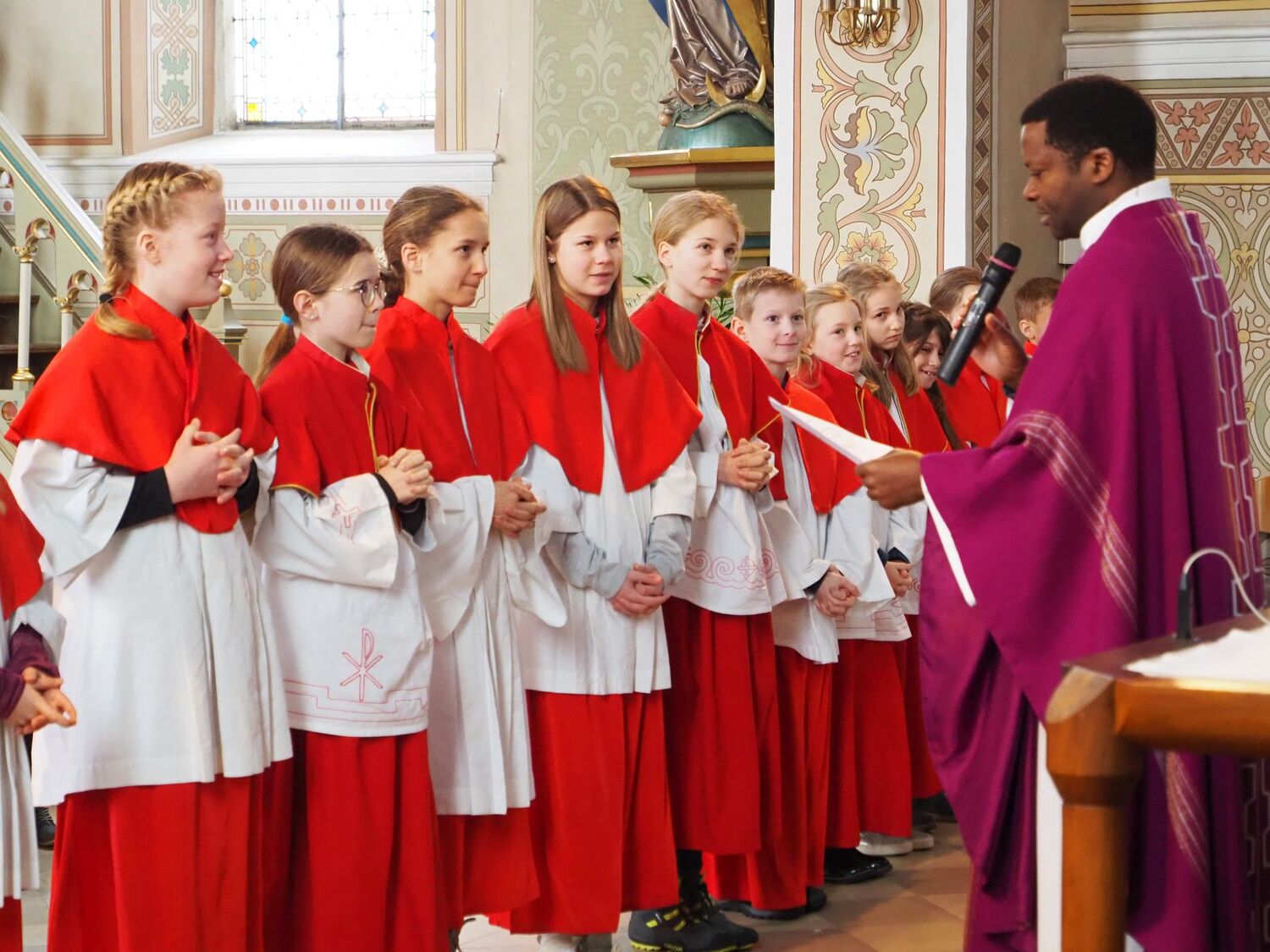 34 Ministranten gestalten derzeit die Gottesdienste mit und leisten dadurch einen wichtigen Beitrag für unsere Pfarrgemeinde. Bei Ausflügen, Spielenachmittagen, sozialen Aktionen und Proben erleben die Kinder und Jugendlichen Gemeinschaft, Spiel und Spaß.