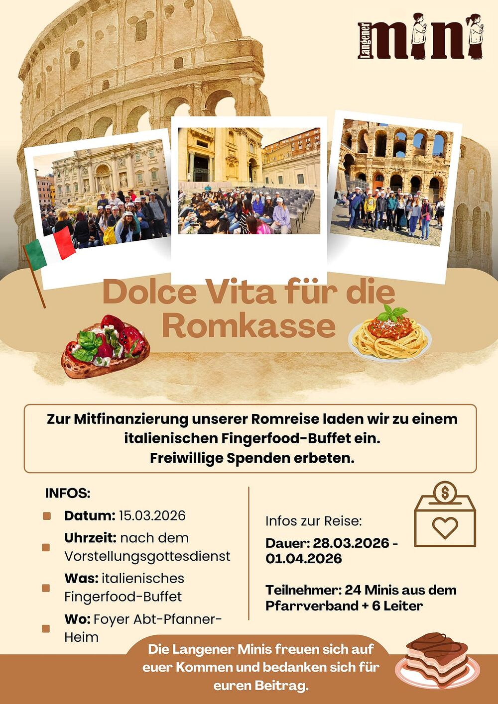 5 Ministranten:innen aus unserer Pfarre fahren gemeinsam mit anderen Ministranten aus dem Pfarrverband über Palmsonntag (28.03. bis 01.04.2026) nach Rom.