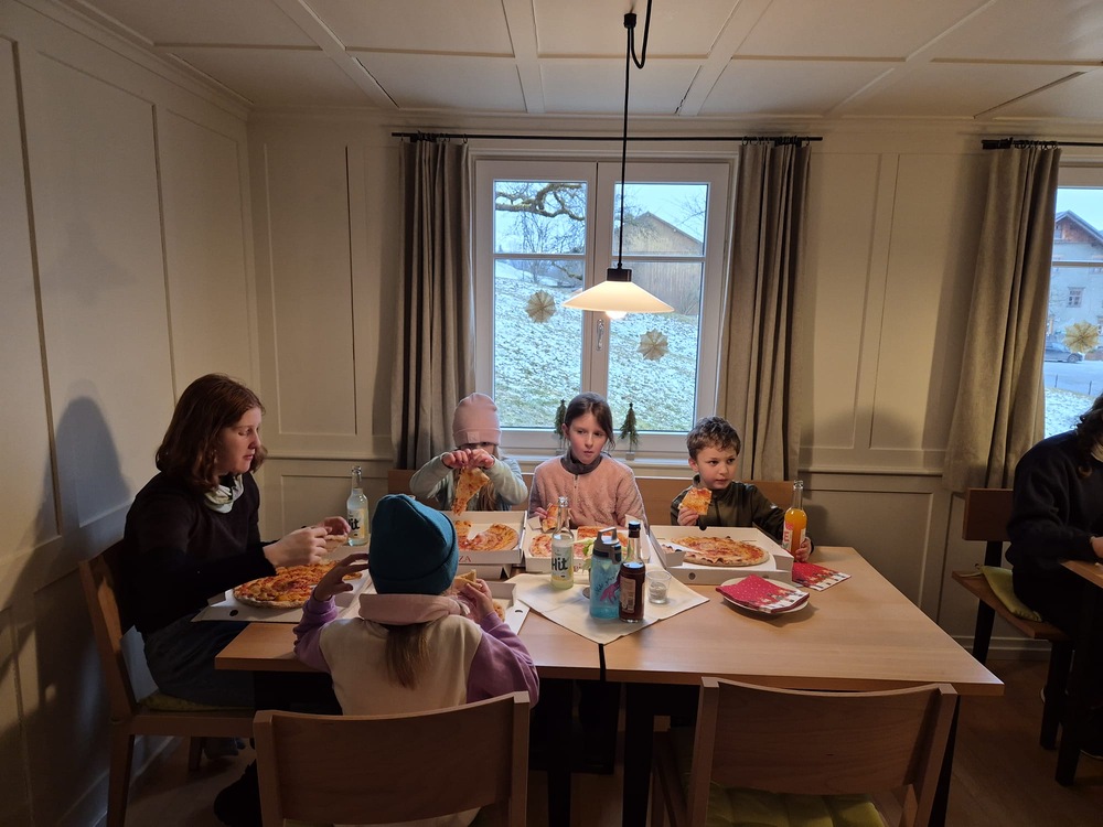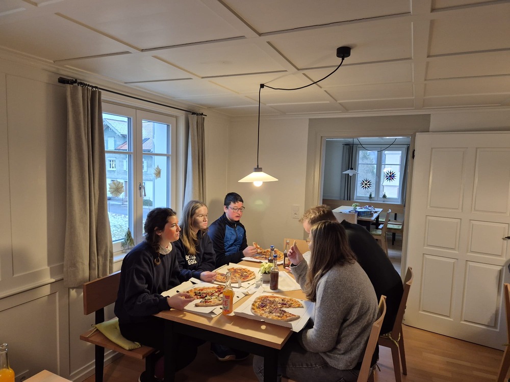 Nach getaner Arbeit wurden alle mit Limo, Pizza und Schokoladekuchen von Sonja Martin im Pfarrhaus belohnt.