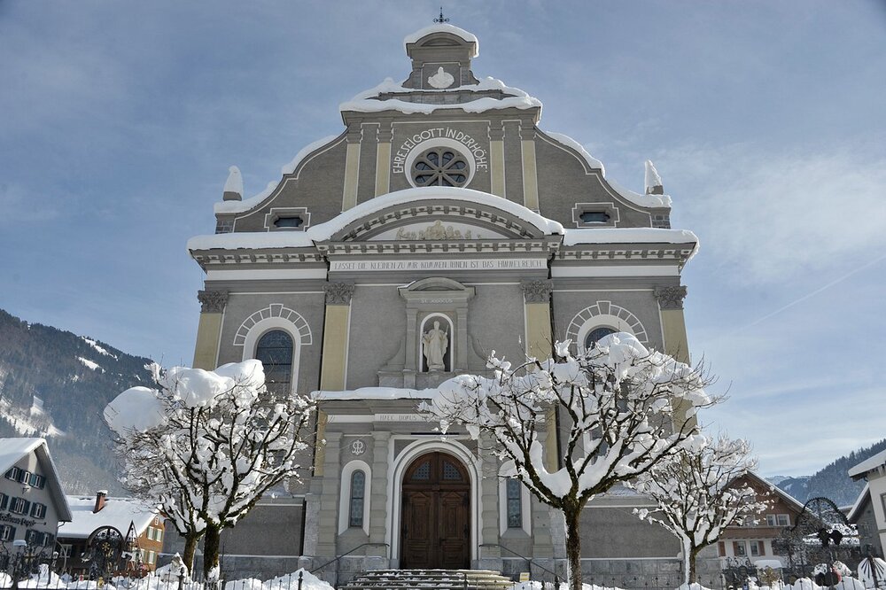 1494 gotische Kirche geweiht, 1771 vergrößert. 1908-1909 nach Plänen von Architekt Albert Rimli neu errichtet.
