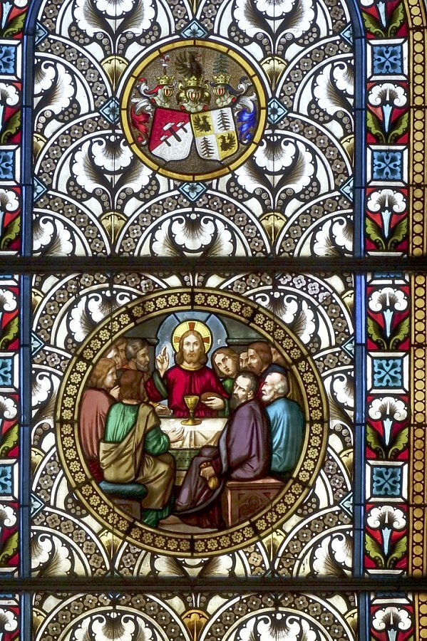 Szenen aus dem Leben Jesu, im Oberfeld Stifterwappen