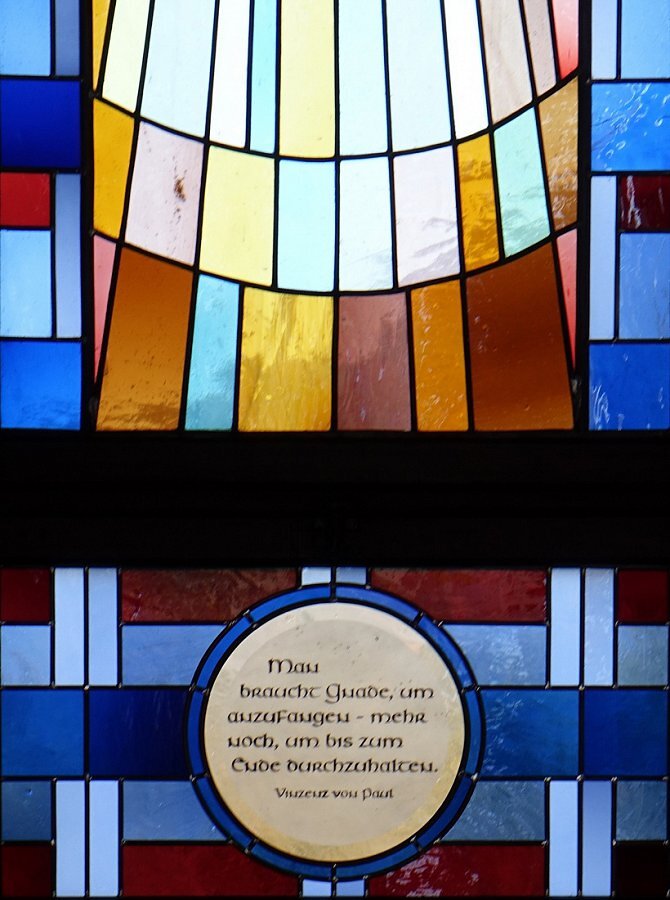 Langhaus, Fenster Gottlieb Schuller, Tiroler Glasmalerei, 1930, 1956
