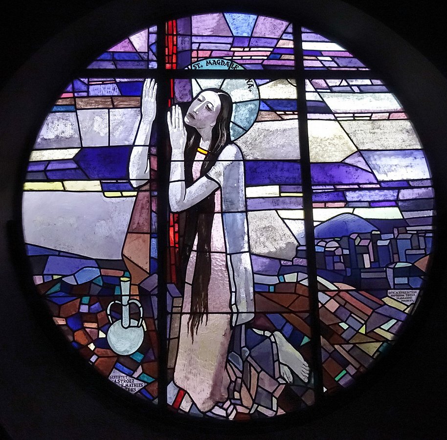 Glasfenster von Martin Häusle, 1936, Ausführung Tiroler Glasmalereianstalt, Innsbruck, Durchmesser 200 cm