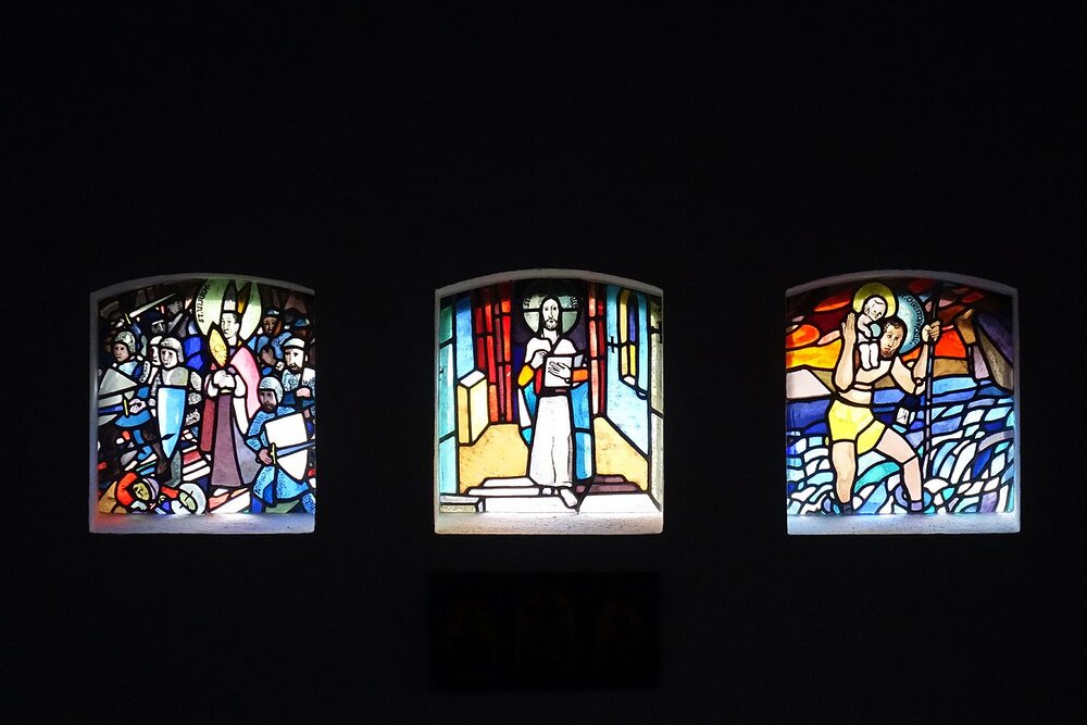 An der Ostwand: hll. Ulrich, Judas Thaddäus und Christophorus, bez. Martin Häusle, 1936
